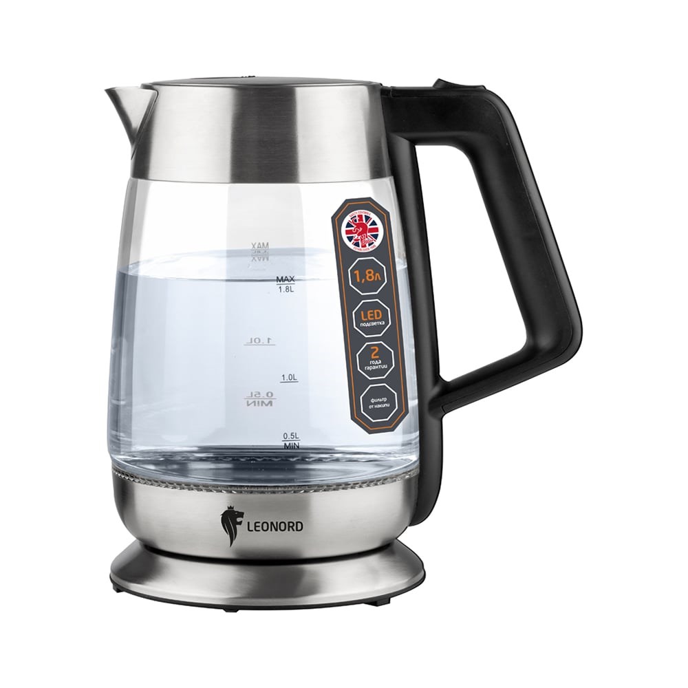 Электрический чайник Leonord LE- 1508 1.8 л стекло, пластик 104866 предназначен для использования в офисе или дома.Хорошо держит температуру, благодаря чему вода дольше остается горячей.Современный дизайн впишется в любой интерьер.Чайник не ржавеет, за счет чего прослужит долго.Мощность: 1850-2200 Вт Корпус из термостойкого стекла Автоотключение при закипании Защита от работы без воды Возможность поворота на подставке на 360º Закрытый нагревательный элемент из нержавеющей стали Шкала уровня воды Фильтр Контроллер: OTTER Гарантия 2 года