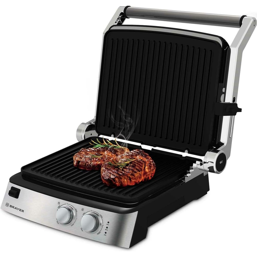 Электрический гриль-пресс BRAYER BR2007 прекрасно поджарит стейк до хрустящей корочки. Пластины нагреваются до 240°С, что является оптимальной температурой для приготовления продуктов на гриле.Панели с антипригарным покрытием, что позволит их легко отмыть от жира. Просто подождите, когда панели остынут и протрите их мягкой губкой с моющим средством.Гриль с пластинами размером 29х23 см станет отличным выбором как для маленькой, так и для большой компании.Пластины гриля открываются на 180 градусов, благодаря чему можно жарить продукты с одной стороны, что особенно удобно для приготовления овощей.С функцией подстройки расстояния между пластинами по высоте продукта возможна жарка продуктов любой толщины.