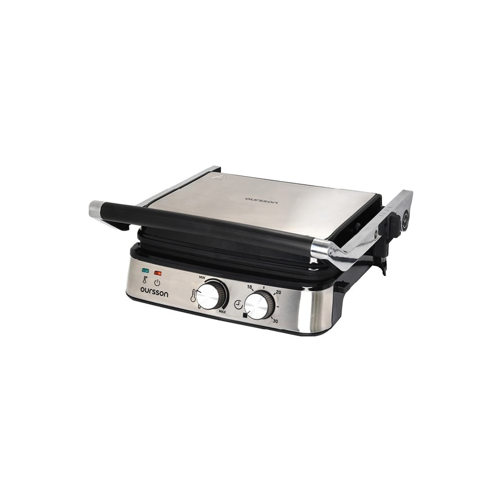 Электрический гриль OURSSON черный EG2030S/BL приготовит полезные блюда с аппетитной корочкой, начиная от мясных стейков, рыбы, до различных горячих бутербродов, бургеров, брускетт, овощей на гриле, грибов, креветок и т.д. Благодаря ребристой поверхности и антипригарному покрытию рабочих пластин, а также возможности регулировки температуры до 230 градусов легко удалит лишний жир. Плавная регулировка температуры осуществляется с помощью регулятора на панели управления, также имеется таймер на 30 минут. Крышка гриля оснащена регулятором степени закрытия для приготовления блюд различной толщины, кроме того предусмотрена возможность открытия крышки на 180°, что дает большую поверхность для жарки. Нагревательные пластины и поддон для сбора жира съемные, их легко мыть. В приборе также предусмотрена фиксация закрытия крышки для компактного хранения.