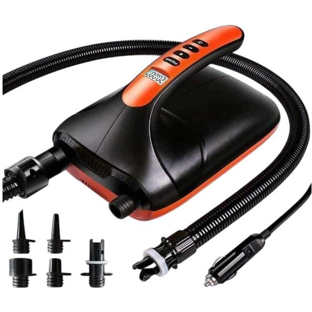 Электрический насос Nonstopika Sk350 - это незаменимый помощник для накачивания лодок, сапбордов, матрасов и других надувных изделий благодаря сменным адаптерам для клапана в комплекте (5 штук). С его помощью можно легко и быстро накачать и сдуть предметы, не прилагая при этом особых усилий, что существенно экономит время и силы.Электронасос имеет двухступенчатую систему работы. Первая ступень обеспечивает максимальную скорость воздушного потока (до 350 л/мин), а вторая - максимальное давление (до 70 л/мин), при этом насос автоматически прекратит работу при достижении установленного значения давления. Портативный насос для лодки оснащен удобным ЖК-дисплеем, на котором отображаются показания давления воздуха, что позволяет контролировать процесс накачки и устанавливать необходимое значение.Насос для сапборда обладает пропускной способностью воздушного потока 350 л/мин и максимальным давлением 20 фунтов на квадратный дюйм, что позволяет накачать предмет всего за 10 минут.Благодаря небольшому весу (1,8 кг), компактным размерам (15,5*25*17,5 см) и работе от прикуривателя насос электрический не займет много места при транспортировке и станет незаменимым помощником во путешествий и отдыха на воде.Подробная инструкция на русском языке поможет быстро и легко разобраться с настройками и начать работу.