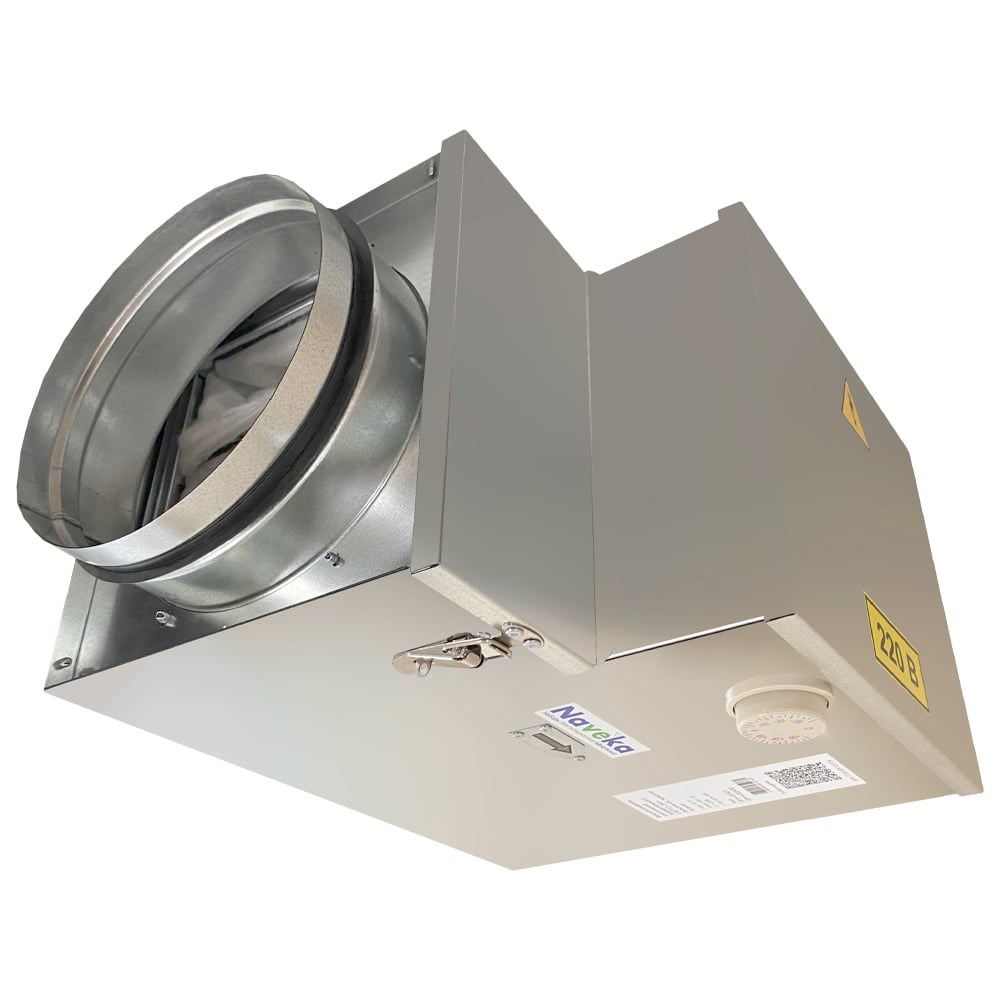 Данные нагреватели применяются для предварительного нагрева воздуха перед такими устройствами как рекуператор или водяной нагреватель. Корпус изготавливается из оцинкованного стального листа. В качестве нагревателей используется ТЭН на технологии PTC, который позволяет безопасно осуществлять нагрев приточного воз-духа. В соединительной коробке имеются необходимые клеммы для электросоединений, с винтовыми клеммами. Степень защиты крышки IP40. В корпусе установлен фильтр с классом очистки G4 для защиты от попадания загрязнений на нагревательные элементы. В нагреватель интегрирован регулируемый термостат. Чувствительный термобаллон термостата отслеживает температуру входящего воздуха, и, если входящий воздух имеет температуру ни-же установленного значения, то осуществляется подача питания на нагревательный элемент.