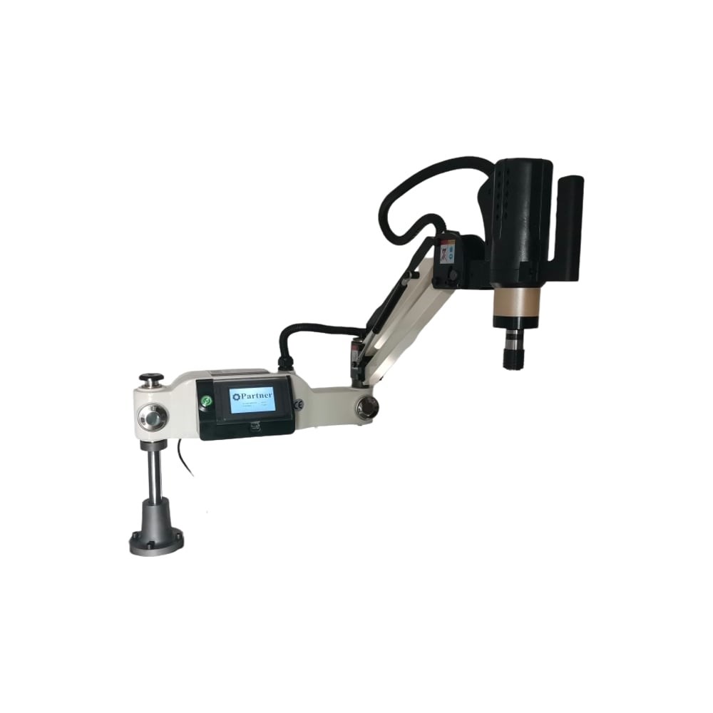 Электрический резьбонарезной манипулятор Partner ETM-30U 880300 позволяет быстро, качественно и эффективно нарезать резьбу в сквозных и глухих отверстиях заготовок из стали, чугуна, цветных сплавов и пластиков; Манипулятор оснащен высокопроизводительным низкооборотным сервоприводом с большим крутящим моментом; Имеет з режима нарезания резьбы: ручной, автоматический и режим нарезания резьбы в глубоких отверстиях. Данные режимы работы позволяют быстро, точно и эффективно нарезать резьбу в любой заготовке; Резьбонарезной манипулятор управляется сенсорном дисплее с русифицированным меню. Дисплей имеет защитную крышку. Настройка манипулятора простая и понятная. Для освоения необходимо 5 мин. Программирование скорости прямого и обратного вращения,крутящего момента, глубины и шага нарезаемой резьбы; Программируемый возвратно-поступательный режим работы предотвращает поломку метчика: после нескольких оборотов вперед шпиндель делает несколько оборотов назад. Защита от перегрузки и превышения крутящего момента; Резьбонарезной манипулятор Partner ETM-30U имеет поворотный в двух плоскостях шпиндель, что позволяет нарезать резьбу под любым углом.