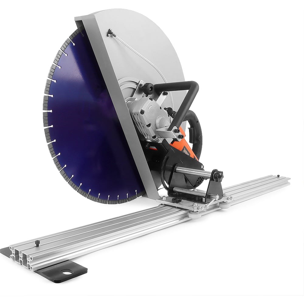 Электрический резчик MESSER KX 600 - высокоэффективный и мощный резчик по бетону, камню и другим строительным материалам. Резчик применяется во время строительных и ремонтных работ для резки блоков, бордюров, литого бетона, труб, полов и стен. Резчик предназначен для резки оконных и дверных проемов, нарезания температурных швов. Максимальный диаметр диска 600 мм позволяет резать материал на глубину до 260 мм., а двигатель мощностью 3500 ватт, развивающий 2500 оборотов отрезного диска в минуту, позволяет без труда справляться с любым материалом. Резчик снабжен системой подачи воды в зону реза, что позволяет значительно увеличить ресурс алмазного диска и уменьшить пылеобразование до 90%. Как и любое оборудование, работающее с подачей воды, резчик MESSER KX 600 оснащен системой защиты оператора от поражения электрическим током - PRCD (УЗО) Устройство защитного отключения – PRCD защищает оператора в случае неполадок с электричеством, позволяет избежать непреднамеренного повторного запуска пилы в случае падения или потери напряжения. ВНИМАНИЕ!!! Резчик КХ 600 применяется только с направляющей шиной! Диск в комплект поставки не входит!