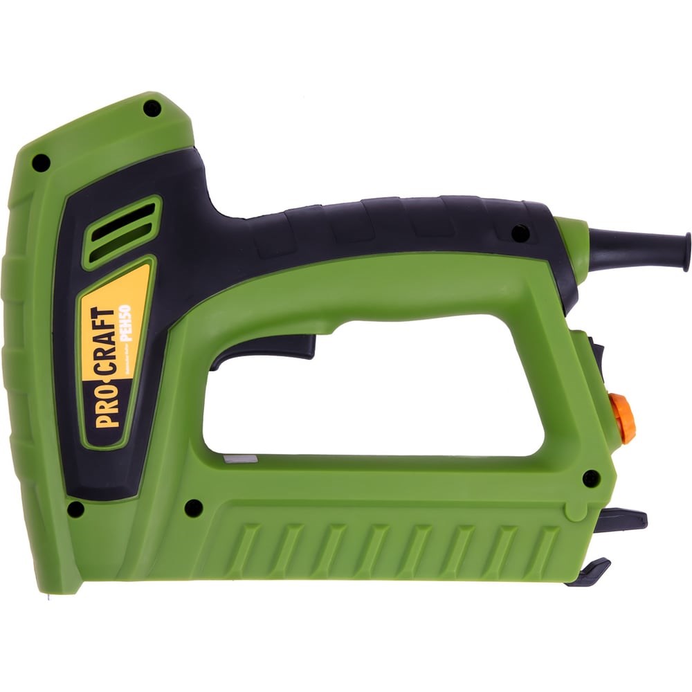 Электрический степлер Procraft PEH50 незаменим в любой работе, связанной со сборкой мебели или конструкций из дерева. Он обладает небольшим размером и значительно удобнее чем механические или пневматические. Пользоваться степлером Procraft PEH50 удобно и комфортно, как на профессиональном уровне, так и в домашних условиях. Это обеспечивается благодаря специальной форме и небольшому весу инструмента. Одновременно можно установить до 50-ти скоб, а значит, в процессе работы не придется отвлекаться на дозаправку. Силу удара можно регулировать самостоятельно, в зависимости от желаемых результатов. Скорость забивания достигает 20 ударов в минуту и является оптимальной.