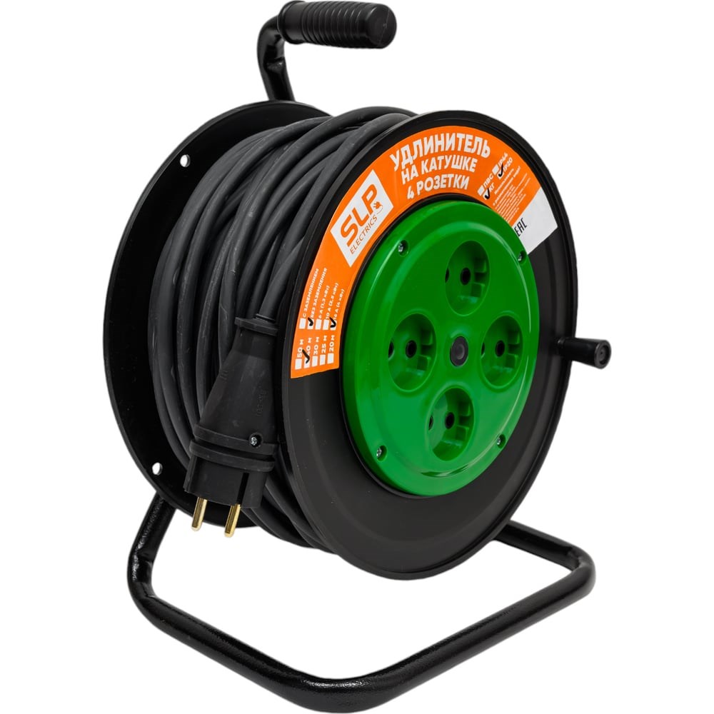 Электрический удлинитель на катушке SVET 40м/4 розетки без заземления (КГ 2x2,5), 16А УХ-16-4-40-К КГ 2x2,5 3111-20081 предназначен для присоединения электрических приемников, рассчитанных на номинальный максимальный ток до 16 А к питающей сети переменного тока напряжением до 250 В частотой 50 Гц. Удлинитель предназначен для бытового и аналогичного применения в помещениях и вне их при температуре от -40 С до +40 С. Наличие в воздухе паров кислот, щелочей и других агрессивных веществ не допускается!