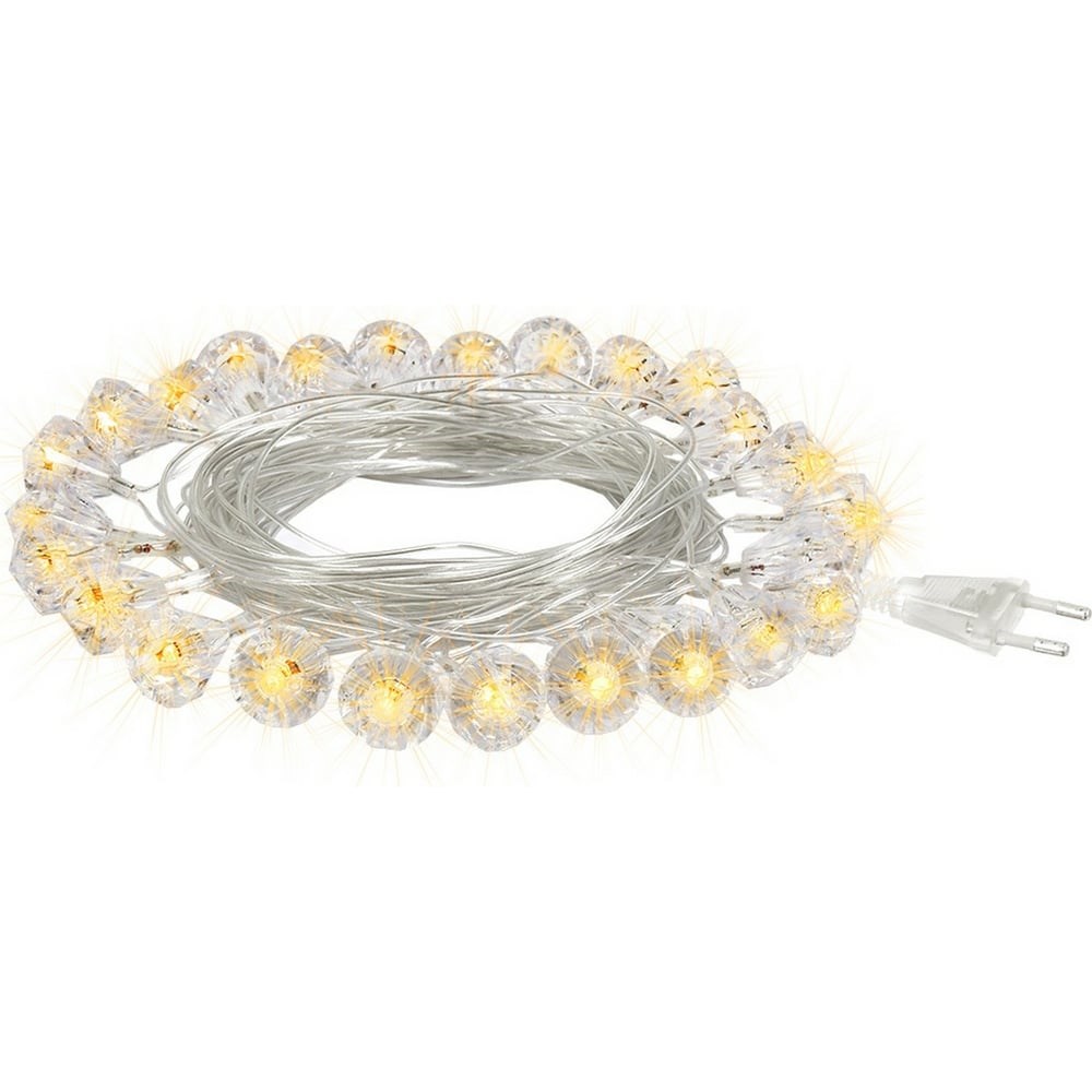 VEGAS Электрогирлянда "Бриллианты" 25 теплых LED ламп, прозрачный провод, 5 м, 220 v 55083 для создания декоративной и праздничной иллюминации.Длина гирлянды 5 м, длина провода 1,8 м, количество светодиодов 25. Цвет свечения теплый, режим работы статичный, цвет провода прозрачный.Степень защиты IP 20. Мощность 1,5 W. Использовать при комнатной температуре.Срок службы 25 000 часов.