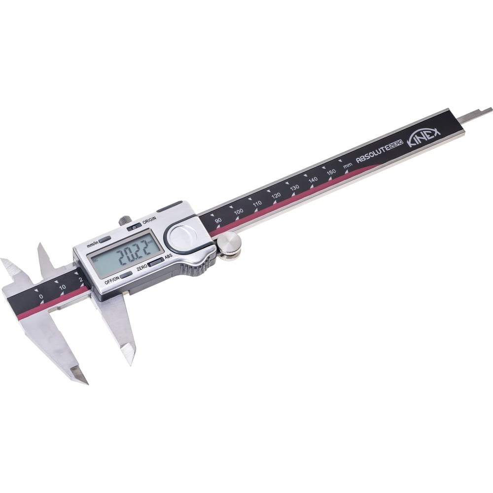 Штангенциркуль электронный Kinex (K-MET) ШЦЦ-1-150мм - это универсальный измерительный прибор для определения линейных размеров деталей с установленной точностью. С его помощью можно производить измерения наружных и внутренних размеров деталей, а также глубины отверстий. Высочайшая точность измерений даже при высоких скоростях, благодаря системе ABSOLUTE. Специальное покрытие, обеспечивает черезвычайно плавное передвижение измерительной рамки. Выполнен из инструментальной стали, в соответствии с DIN862, цена деления 0.01мм.