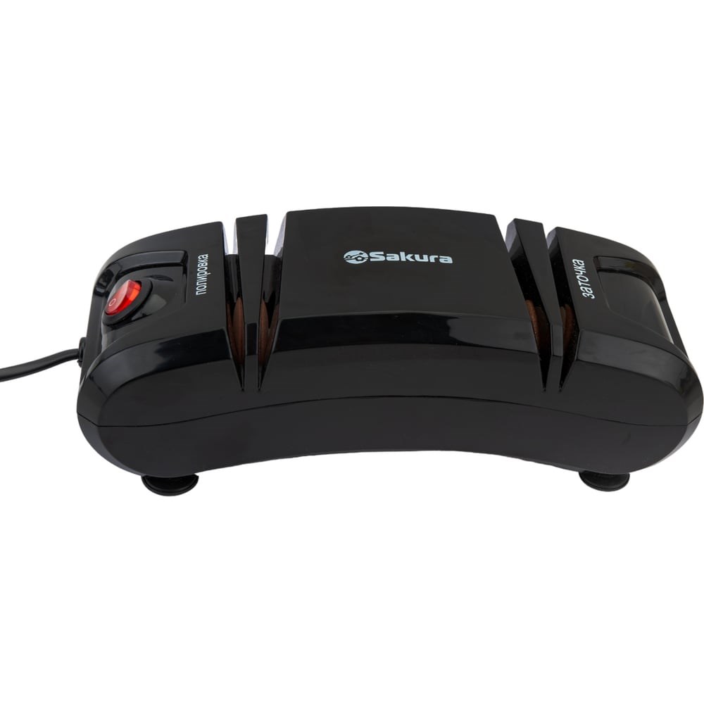 Электроножеточка Sakura черный SA-6604BK РТ-00000835 предназначена для бытового использования. Мощность 120 Вт, заточка и полировка с помощью двух точильных кругов, автоматическая регулировка угла заточки с помощью направляющих слотов, подходит для ножей из стали, стальных углеродных сплавов, нержавеющей стали.