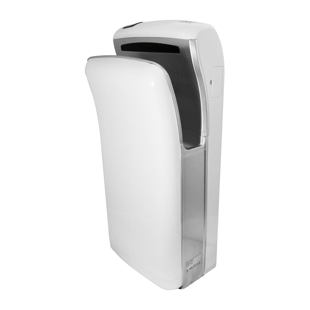 Энергоэффективная сушилка. С HEPA фильтром. С каплесборником. Высокоскоростная сушилка, не сушит кожу. Воздух подается с трех сторон из форсунок, под определенным углом. Область срабатывания сенсора - 5-20 см. Класс энергоэффективности - А+.