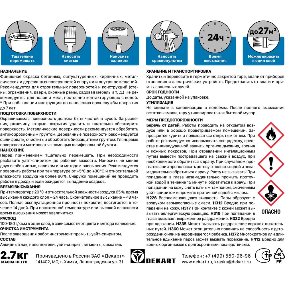 Эмаль ЭКСПЕРТ ПФ-115 глянцевая, терракотовая, 2.7 кг 34133 применяется для защитно-декоративного окрашивания металлических, деревянных и минеральных поверхностей снаружи и внутри помещений. Продукт используют для обработки дверей, рам, перил, наличников, плинтусов, оград, механизмов и конструкций.Благодаря составу, средство образует глянцевое покрытие стойкое к вредным факторам окружающей среды.Производится в соответствии ГОСТу 6465-76.Способ нанесения:Поверхность должна быть прочной, чистой и сухой. С металлических основ удалить рыхлую ржавчину, окалины и обезжирить растворителем, рекомендуют предварительно загрунтовать антикоррозионным грунтом ГФ 021. Эмаль распределяют кистью, валиком или краскопультом в 2 слоя. При температуре от 18 до 22 градусов время высыхания каждого слоя 24 часа.