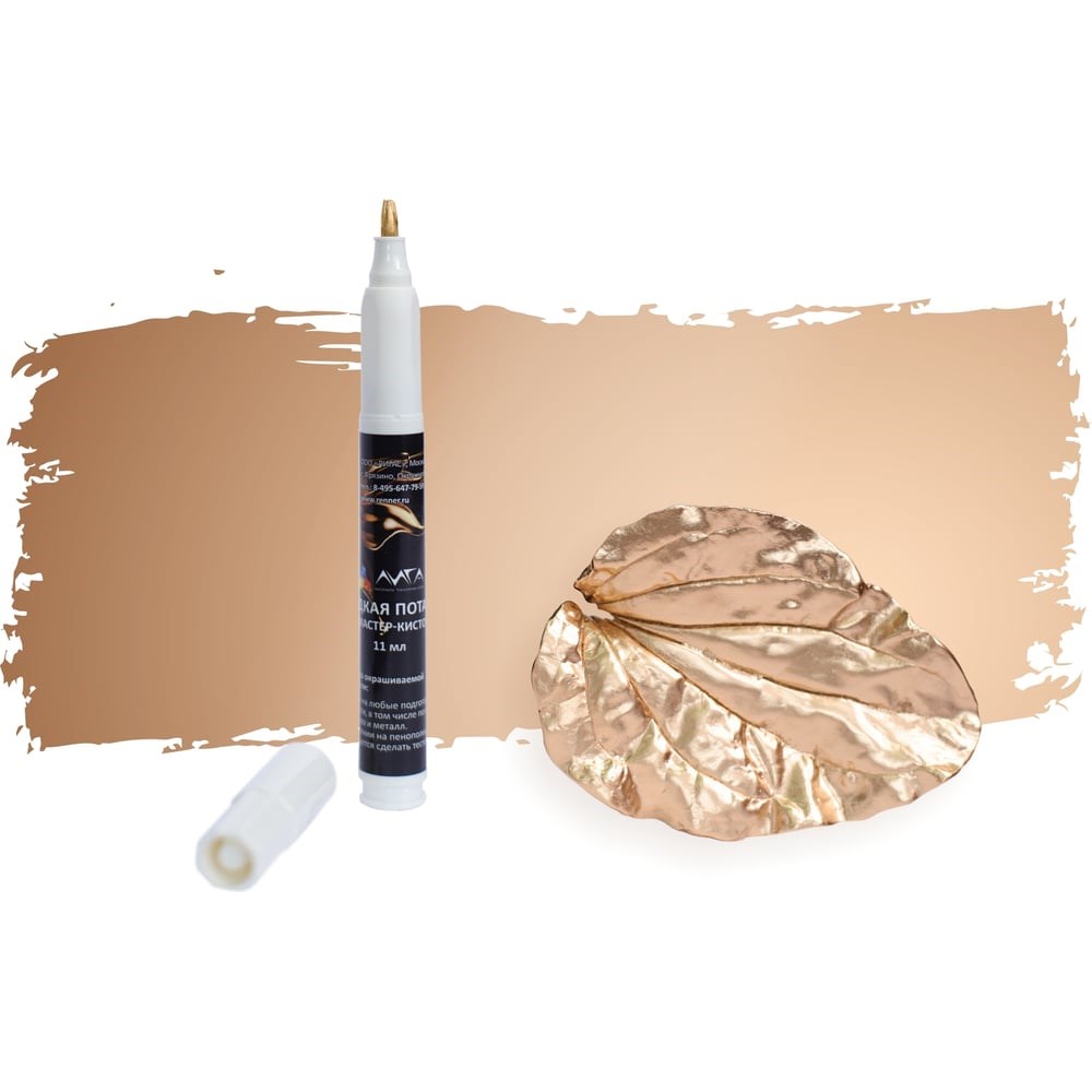 Эмаль-фломастер кисточка Лига Розовое золото (11мл) - это продукт на основе синтетических смол и металлических пигментов имитирующая цвет и блеск сусальных листов. Область применения Используется для декорирования карнизов из ПУ и дерева, отдельных архитектурных элементов, на ненагруженные поверхности, при использовании на нагруженных поверхностях можно перекрыть акриловым лаком, но степень блеска изменится. Материал наносится на загрунтованные поверхности. Cушка после нанесения 10 минут ,полное высыхание через 2 часа Для защиты от окисления, рекомендуется нанести лак для жидкой потали Перед использованием хорошо взболтать продукт в течении 1 мин. Жидкая поталь не колеруется с помощью пигментов!