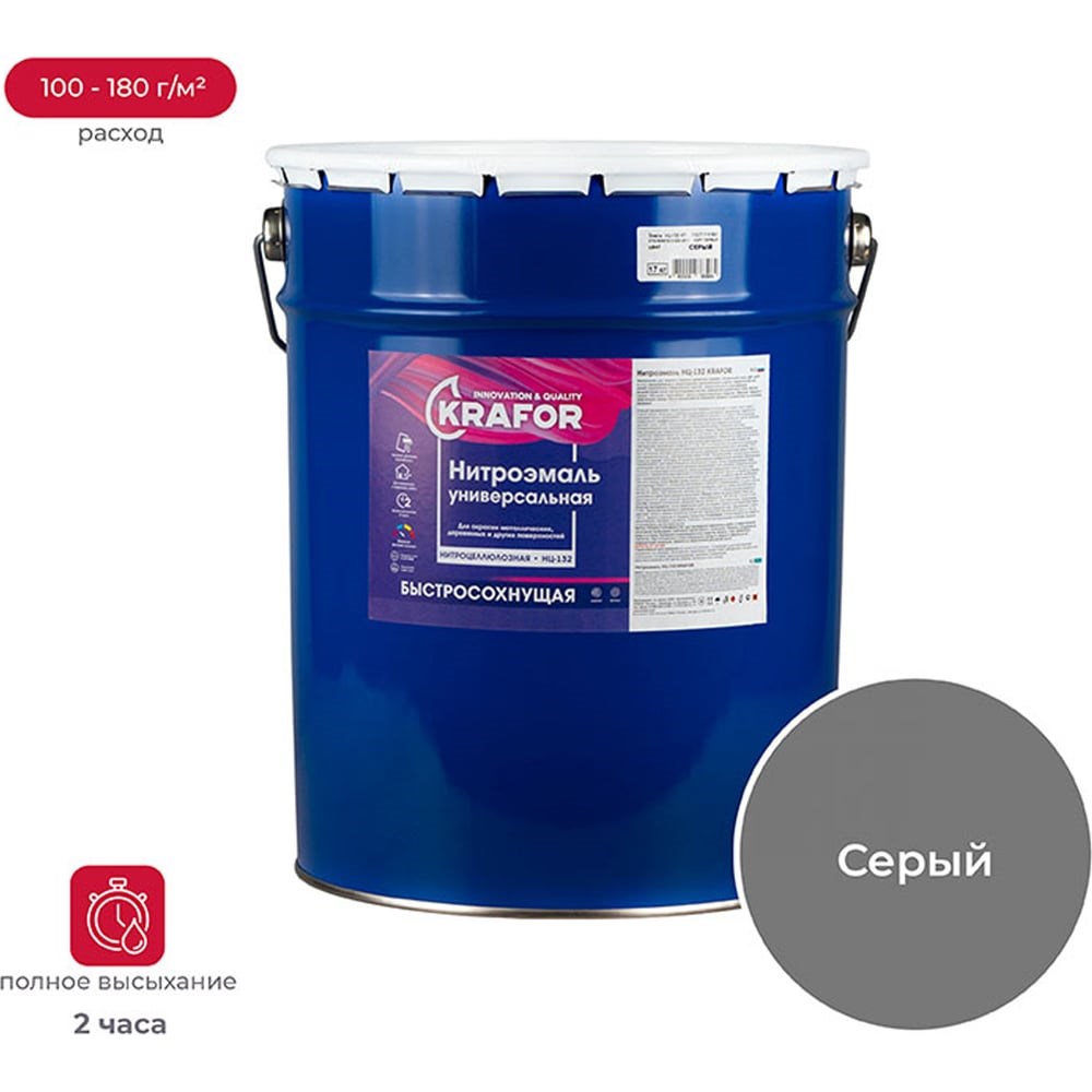 Предназначена для защиты и окраски древесных (дерево, натуральный шпон, ДВП, ДСП и т.п.), предварительно загрунтованных металлических и других поверхностей или ранее окрашенных поверхностей изделий, подвергающихся атмосферным воздействиям и/или эксплуатируемых внутри помещений зданий всех типов. Высыхание: 2 часа; Расход: 100 - 180 г/м² на однослойное покрытие в зависимости от цвета и способа нанесения; Разбавитель: растворитель №646 (ГОСТ 18188-2020) или ксилол; Срок годности: 365 дней. Серый Нитроэмаль быстросохнущая НЦ-132 Быстро сохнет. Образует атмосферо-, свето- и водостойкое твердое, эластичное покрытие. После высыхания не оказывает вредного воздействия на организм человека. Перед применением необходимо тщательно перемешать, в случае необходимости разбавить растворителем №646, сделанным только по ГОСТ 18188-2020 или использовать ксилол.
