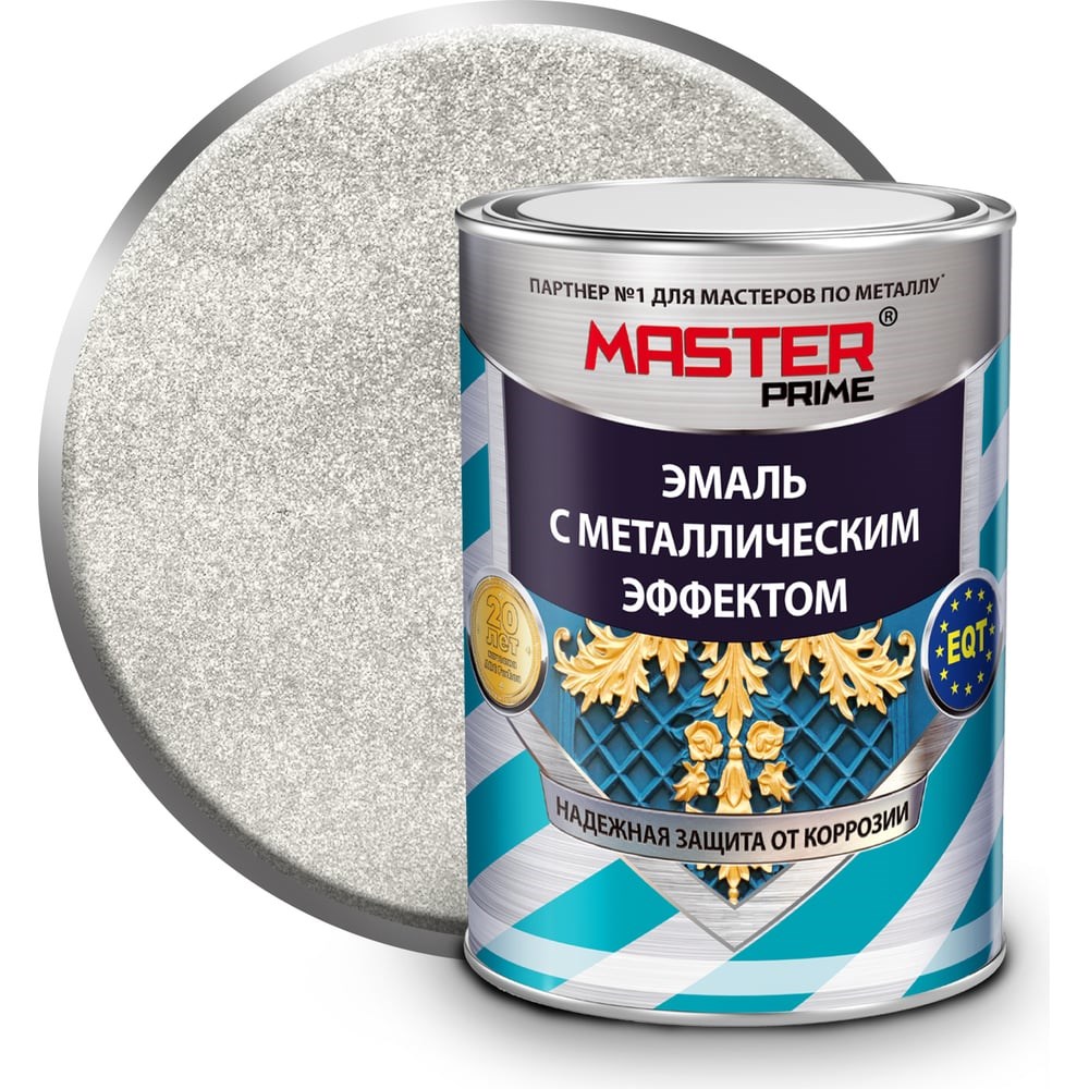 Высококачественная алкидная модифицированная эмаль с металлическим эффектом. Придает поверхности высокие защитные свойства и красивый внешний вид. Образует прочное долговечное покрытие. Обладает отличной адгезией к металлическим поверхностям. Наносится прямо на ржавчину, обладает высокой укрывистостью. Маскирует мелкие дефекты поверхности. Легко наносится, не требует предварительного грунтования, быстро высыхает. Предотвращает появление коррозии.При нанесении эмали по ржавчине важно в точности соблюдать рекомендации по времени межслойной сушки и учитывать, что в промежутке от 2-х часов до 7-ми суток после нанесения первого слоя, наносить последующие слои не допускается- оптимально – нанесение эмали распылителем, причем в несколько проходов, но за один раз, не прерываясь на межслойную сушку- для более эффективной антикоррозионной защиты рекомендуем использовать грунт по ржавчине MASTER PRIME (эмаль наносится поверх грунта ровно через 1 час или по истечении 7 суток, после окончательного отверждения грунта).При нанесении краскопультом эмаль следует разбавить ксилолом или сольвентом на 5-10 % от объема эмали. Второй слой следует наносить через 30-60 минут (но не позднее, чем через 2 часа).Время высыхания каждого слоя при температуре +20°С «от пыли» - 2 часа, второй слой следует наносить через 30-60 минут (но не позднее, чем через 2 часа). Окончательное отверждение покрытия - 5-7 суток в зависимости от влажности и условий отверждения.Расход 80-160 г/м² на однослойное покрытие