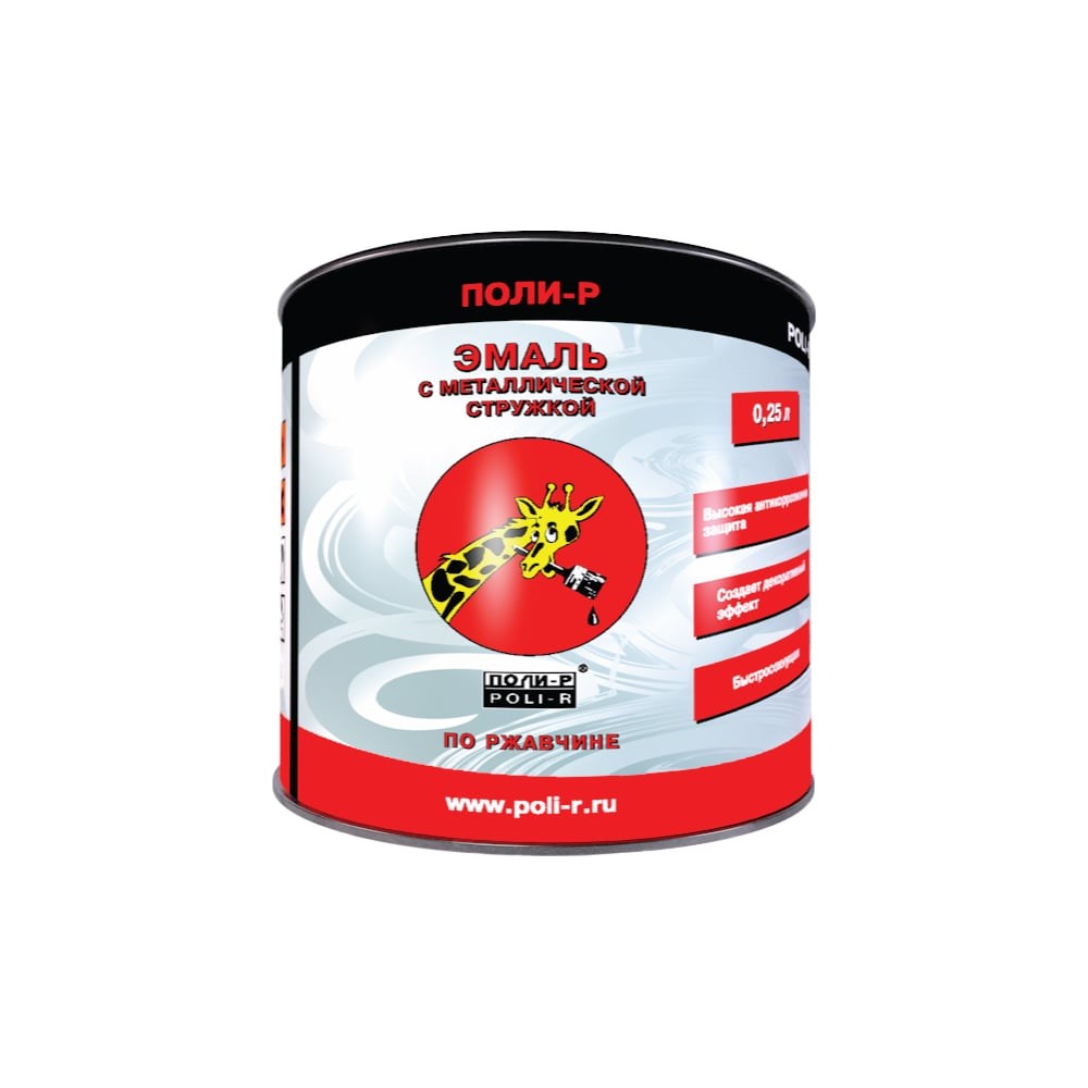 Эмаль с металлической стружкой (золотисто-жёлтая 703; 0.25 л) Poli-R 14355 обеспечивает защиту от коррозии на длительный срок и создает декоративный эффект. Применяется для окраски пластиковых, деревянных, кирпичных, бетонных и металлических оснований (из черных, цветных и оцинкованных металлов). Полностью отвердевшая пленка эмали выдерживает температурный диапазон от -45°С до +80°С, кратковременно до + 150°С. Обладает химической стойкостью к растворам кислот, щелочей, бензина, дизельного топлива.