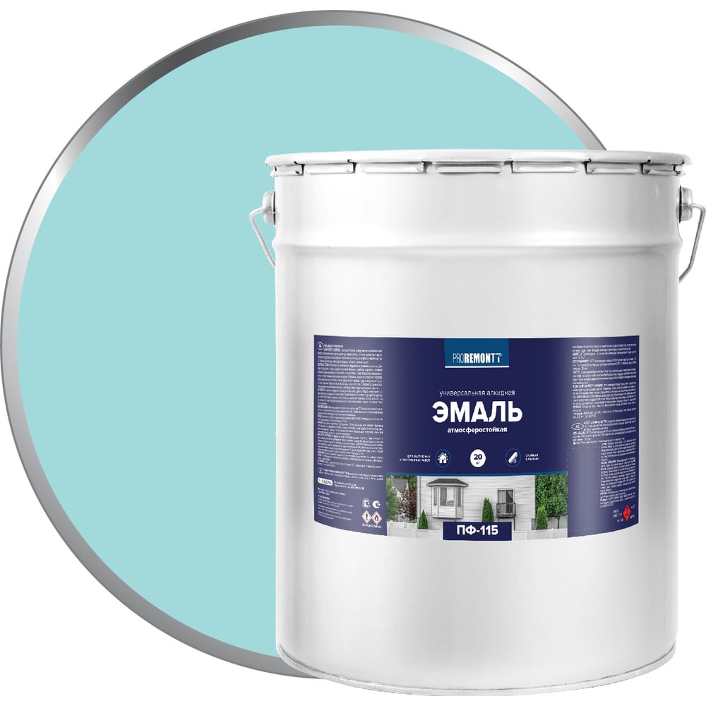 Эмаль PROREMONTT ПФ-115 мятная, RAL 6027, 20 кг Лк-00009812 предназначена для обработки поверхностей из металла, бетона и дерева. Применяется для декоративно-отделочных работ внутри и вне помещений. Эмаль легко наносится и обладает антикоррозийными свойствами. Состав образует ровное, устойчивое к износу и влиянию окружающей среды покрытие с глянцевой поверхностью.