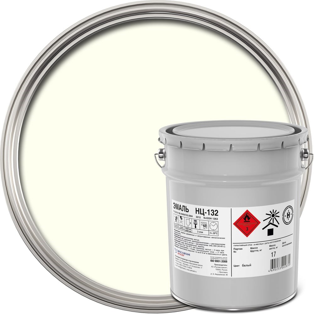 Эмаль ЯРОСЛАВСКИЕ КРАСКИ НЦ-132 по металлу и дереву, белая, ведро 17 кг 4601.3 предназначена для окрашивания деревянных и загрунтованных металлических поверхностей, эксплуатируемых в атмосферных условиях и внутри помещений (оконные рамы, двери, деревянные постройки, трубы, ограды, скамьи, гаражи). Эластичное покрытие эмали устойчиво к действию воды, масел и моющих средств, поэтому идеально подходит для защиты деревянных поверхностей.
