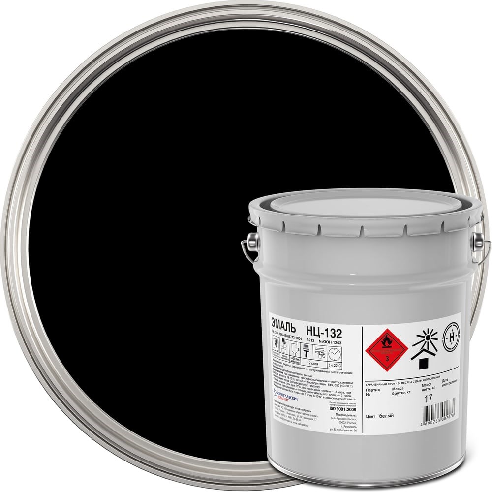 Эмаль ЯРОСЛАВСКИЕ КРАСКИ НЦ-132 по металлу и дереву, черная, ведро 16 кг 4605.3 предназначена для окрашивания деревянных и загрунтованных металлических поверхностей, эксплуатируемых в атмосферных условиях и внутри помещений (оконные рамы, двери, деревянные постройки, трубы, ограды, скамьи, гаражи). Эластичное покрытие эмали устойчиво к действию воды, масел и моющих средств, поэтому идеально подходит для защиты деревянных поверхностей.