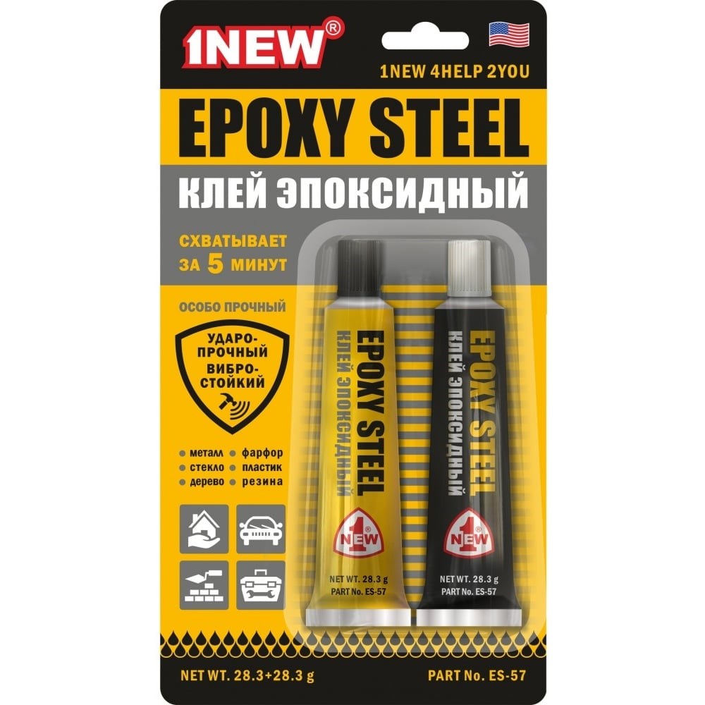 Эпоксидный двухкомпонентный клей 1NEW 57,6 г ES-57 предназначен для надежного склеивания различных материалов: металл, керамика, стекло, фарфор, пластик, резина, дерево. Двухкомпонентный состав быстро сохнет (5-10 минут), образуя прочное эластичное клеевое соединение.Продукт отличается хорошей устойчивостью к воздействию масел, вибрациям и ударным нагрузкам. После затвердевания возможна механическая обработка и поверхностное окрашивание.