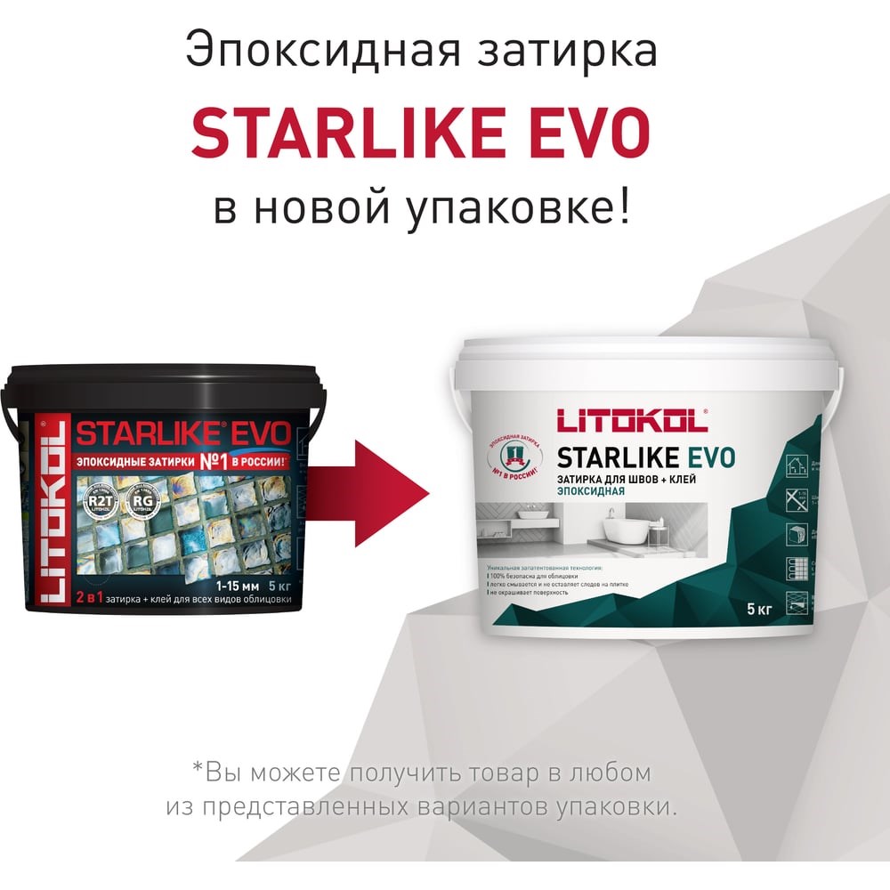 STARLIKE EVO двухкомпонентный эпоксидный кислотостойкий, щелочестойкий состав для затирки межплиточных швов с шириной шва от 1 до 15 мм и использования в качестве клея для всех видов облицовочной плитки и мозаики. Компонент А представляет собой смесь эпоксидной смолы, цветных микросфер и специальных органических добавок. Компонент В — инновационный органический катализатор (отвердитель). После смешивания компонентов А и В получается кремообразный состав удобный в работе. После полной полимеризации обладает непревзойденной гладкостью поверхности шва, высокой стойкостью к механическим воздействиям и превосходной химической стойкостью. Область применения: для внутренних и наружных работ, затирка швов, укладка плитки или мозаики, бассейны, душевые кабины, кухни, ванные комнаты и т.д.