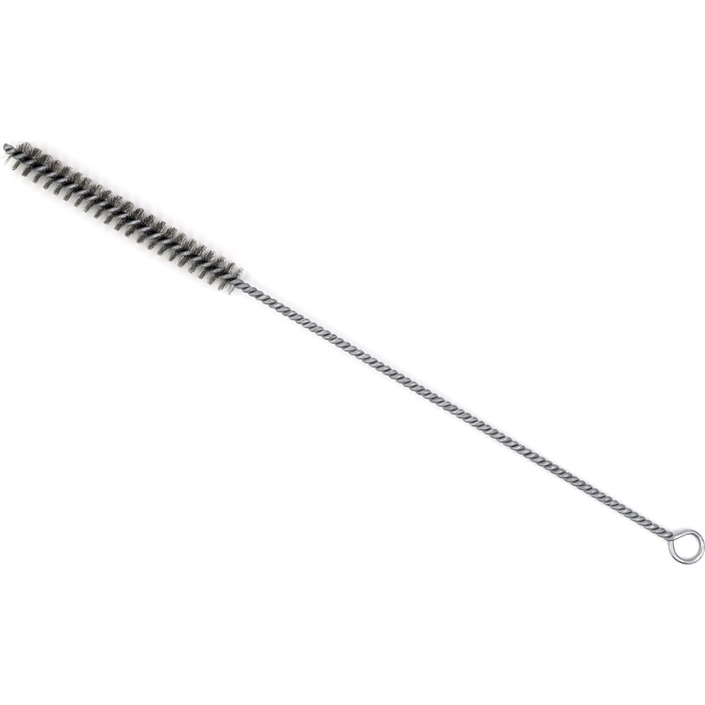 Щетка-ерш применяется для очистки цилиндрических поверхностей из нержавеющий сталей, алюминия, отверстий, прочистки трубок, шлангов, удаления заусенцев и подобных работ. Исполнение: с хвостовиком + кольцо Назначение: зачистка/Очистка Обрабатываемый материал: нержавеющая сталь/алюминий Диаметр D, Д (мм): 12 Размер A, E (мм): 100 Посадочный диаметр B, G, F (мм): хвостовик с кольцом Материал ворса щетки: сталь нержавеющая Диаметр ворса (мм): 0.12 Тип (форма) ворса: гофрированный (волнистый)