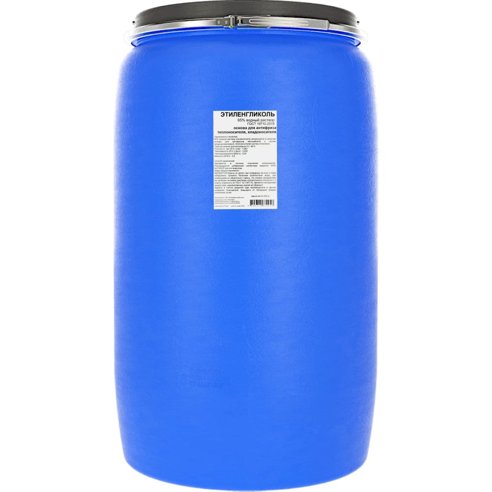 Водные растворы этиленгликоля широко применяются в автономных системах отопления, охлаждения, вентиляции и промышленного кондиционирования в качестве теплохладоносителя. ГОСТ 19710-2019. Температура начала кристаллизации — -58 ˚С Плотность при 20 ˚С — 1,083 г/см3 Теплоёмкость 20 ˚С — 3,200 кДж/кг Теплопроводность — 0,34 Втм*к Вязкость — 0,6 МПа*с