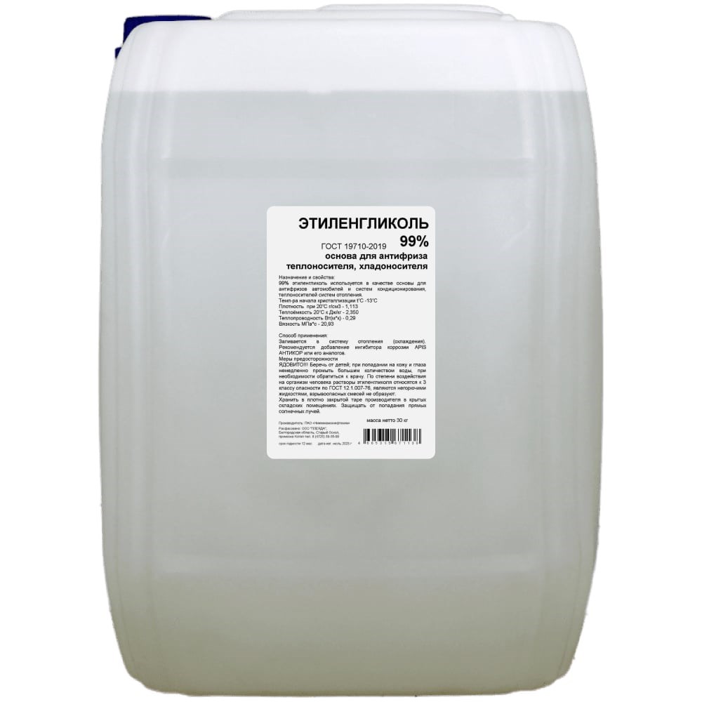 Водные растворы этиленгликоля широко применяются в автономных системах отопления, охлаждения, вентиляции и промышленного кондиционирования в качестве теплохладоносителя. ГОСТ 19710-2019. Температура начала кристаллизации — -13˚С Плотность при 20˚С — 1,113 г/см3 Теплоёмкость 20˚С — 2,350 кДж/кг Теплопроводность — 0,29 Втм*к Вязкость — 20,93 МПа*с