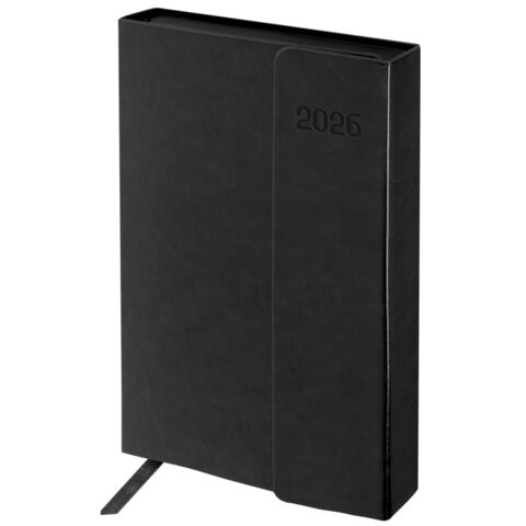 Ежедневник датированный 2026 А5 148х218 мм, GALANT "Magnetic", под кожу, клапан, черный, 117483
