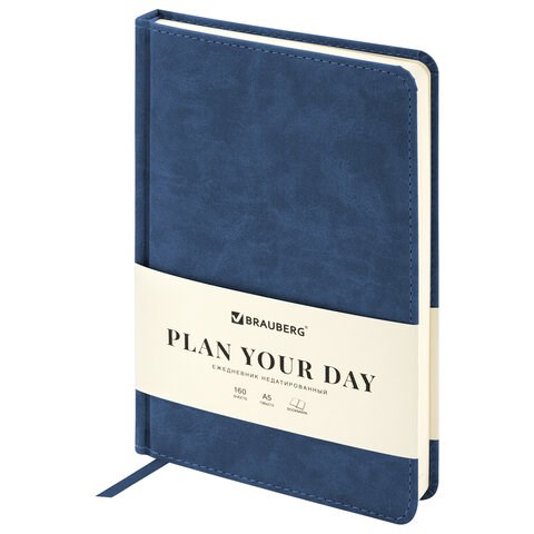 Ежедневник недатированный А5 138х213 мм BRAUBERG "Status", под кожу, 160 л., темно-синий, 113362