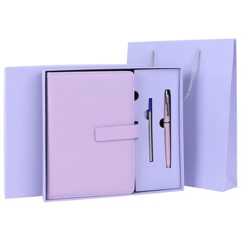 Ежедневник в подарочном наборе 5 в 1, А5, 145x212 мм, BRAUBERG "President", под кожу, 160 листов, сиреневый, 116853