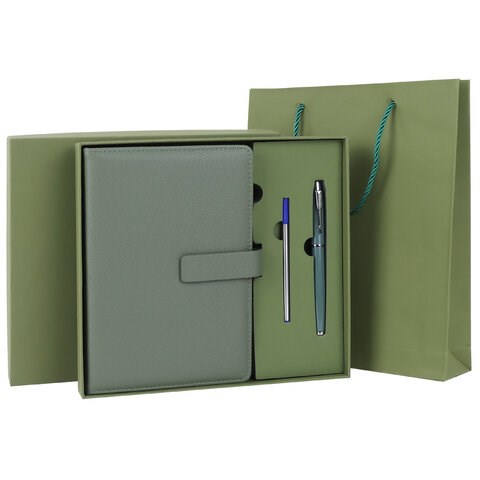 Ежедневник в подарочном наборе 5 в 1, А5, 145x212 мм, BRAUBERG "President", под кожу, 160 листов, зеленый, 116855