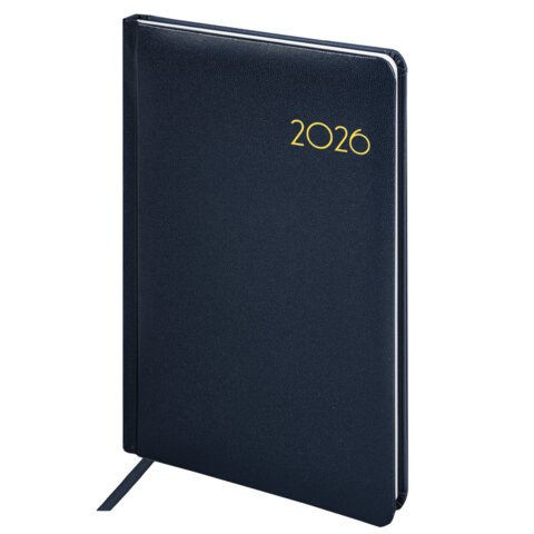 Еженедельник датированный 2026, А5, 145х215 мм, BRAUBERG "Select", балакрон, темно-синий, 117181
