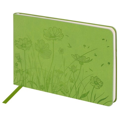 Еженедельник датированный 2026 МАЛЫЙ ФОРМАТ 105х160 мм, А6, BRAUBERG "Imprint", тиснение, зеленый, 117212