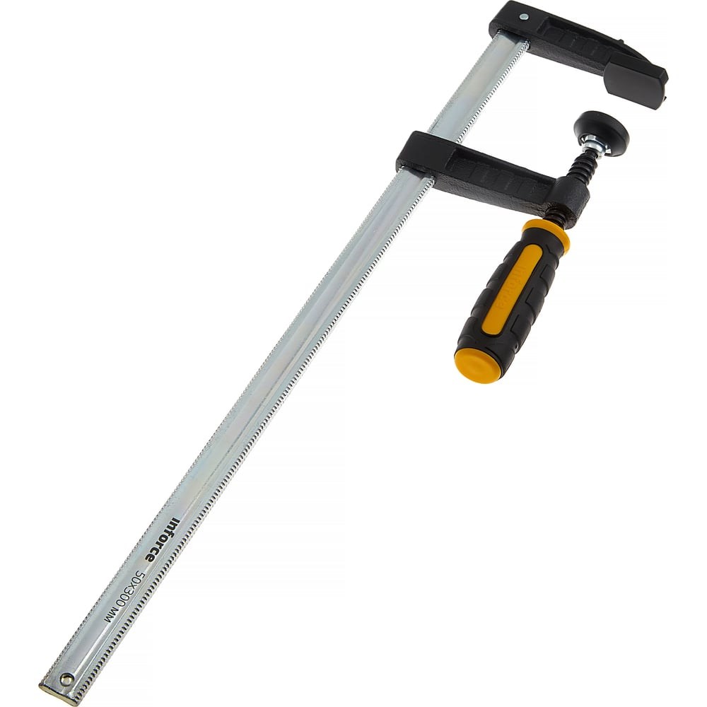 F-образная струбцина 50х300мм Inforce 06-03-28 создана для работы с деревянными деталями. Для лучшего сжатия инструмент дополнен чугунными губками с порошковым покрытием. Инструмент удобен для ладони, не вызывает усталости и существенно упрощает работу техника, слесаря и других специалистов. Сила сжатия до 170 кг обеспечивает надежный захват заготовки.