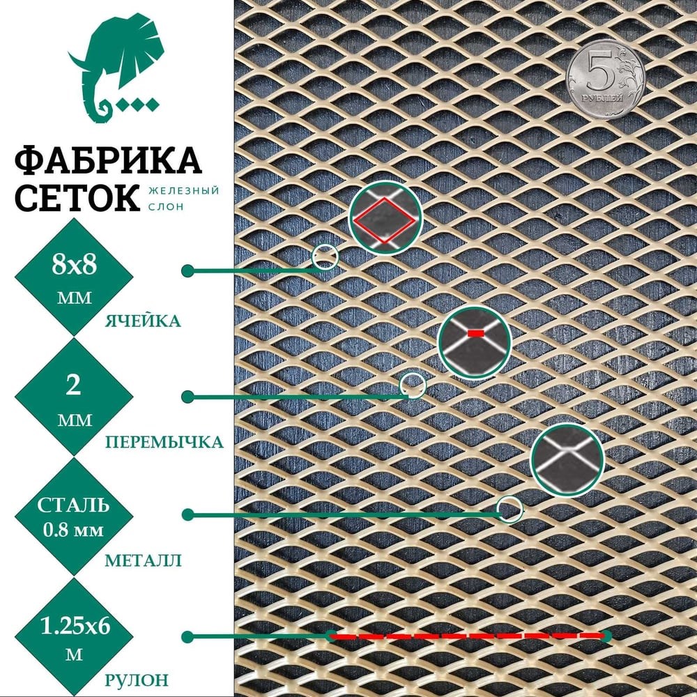 Сетка ПВЛ/ЦПВС просечно-вытяжная стальная неокрашенная лофт Фабрика сеток "Железный слон" ячейки 8x8 мм, перемычка 2 мм, рулон 1.25x6 м PVS000025-6 изготавливается в листах размером 1.25х6 м и для удобства транспортировки скручивается в рулон Ячейка сетки имеет форму ромба со сторонами 8х8 мм Сетка достаточно жесткая за счет перемычки 0.8х2 мм Просечка имеет эффектный оригинальный внешний вид и отлично впишется в интерьер. Идеально подойдет для изготовления мебели (стеллажи, шкафы, обувницы) и других изделий в стиле лофт (LOFT) Легко обрабатывать Изготовлена из стали 08ПС, неокрашенная Перед покраской рекомендуем сетку загрунтовать