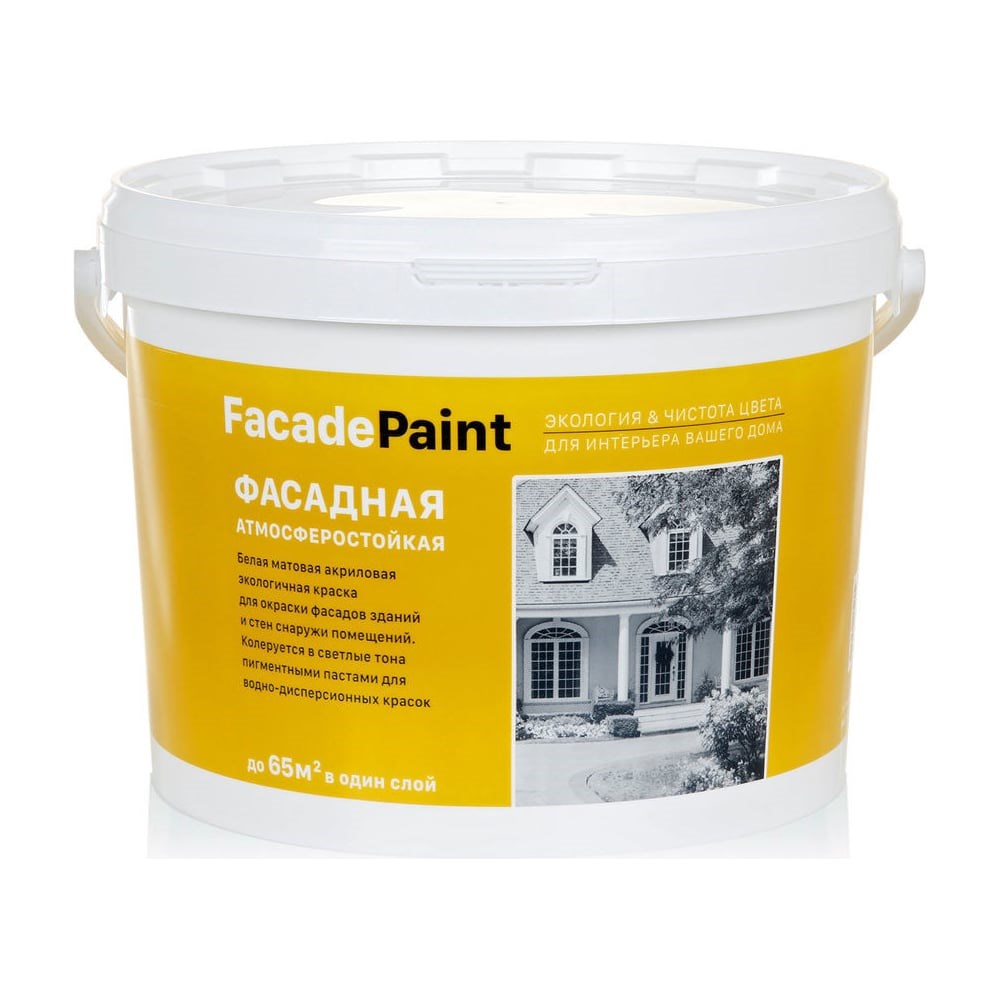 Водно-дисперсионная акриловая краска для окраски снаружи и внутри помещений бетонных, оштукатуренных, зашпатлеванных и кирпичных стен. После высыхания полностью безопасна для здоровья людей и домашних животных.