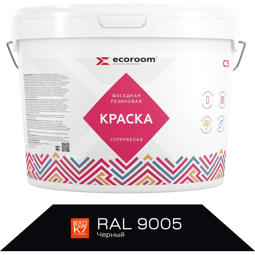 Фасадная резиновая краска ECOROOM RAL 9005 черный, 2.4 кг Е-Кр -3582/9005 - это высокоэластичный состав с высокими показателями устойчивости к эксплуатационной нагрузке. Идеально подходит для окрашивания бетона, газобетона, гипсокартона, дерева, ДСП, ДВП, кирпичных, зашпаклеванных, оштукатуренных поверхностей.Благодаря составу, краска образует дышащее, светопрочное покрытие, не препятствующее воздухообмену. Может использоваться как гидроизоляция, для декоративной отделки кирпичных и каменных стен. Эффективно используется при и ремонте зданий, поверхности которых склонны к образованию микротрещин, для первичной и ремонтной окраски крыш, цоколей и подвалов.