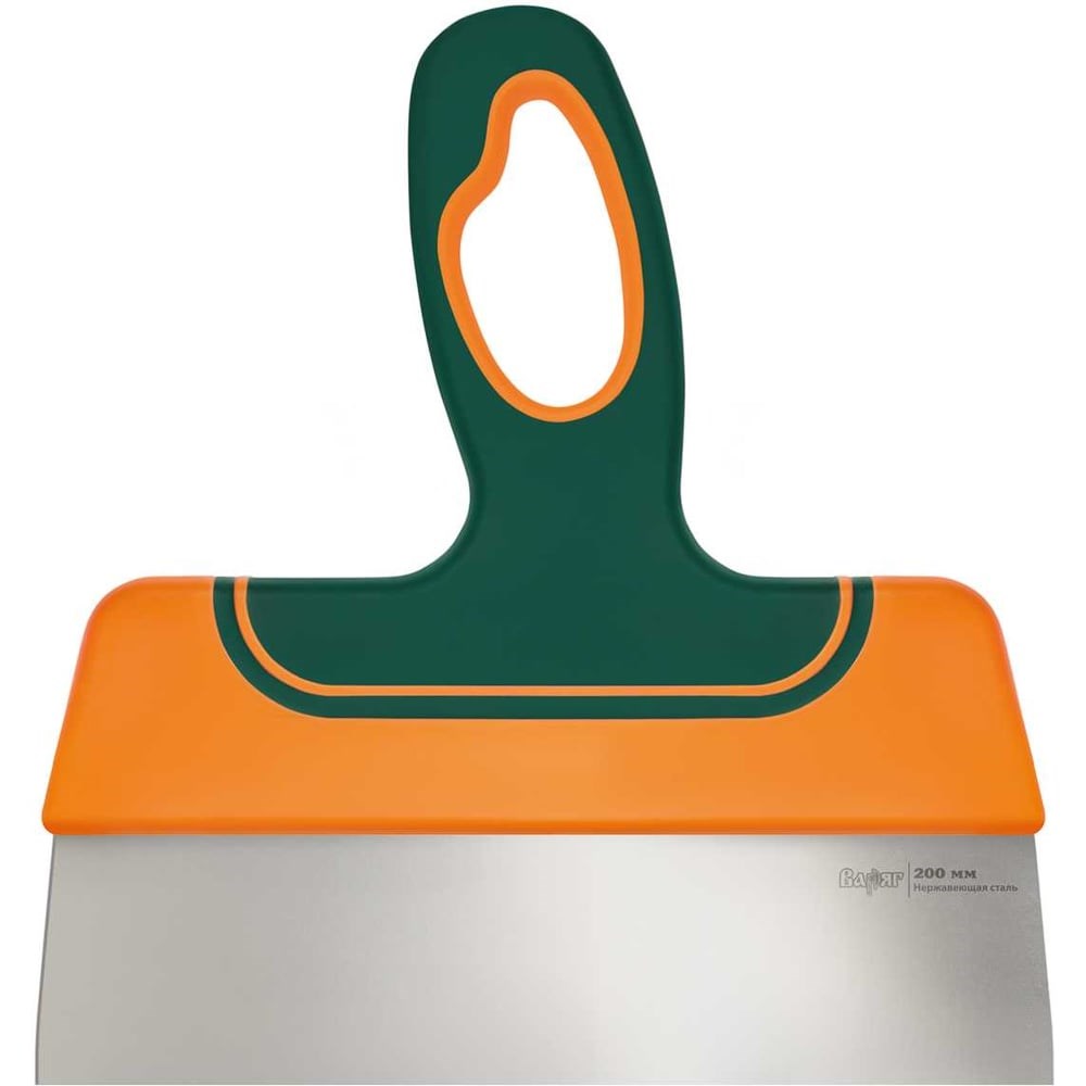 Фасадный шпатель (нержавеющая сталь, двухкомпонентная ручка, 200 мм) ВАРЯГ 35227 тов-153468. Полотно из нержавеющей сталь с содержанием никеля - долгий срок службы шпателя. Эргономичная обрезиненная противоскользящая рукоятка - удобно работать.