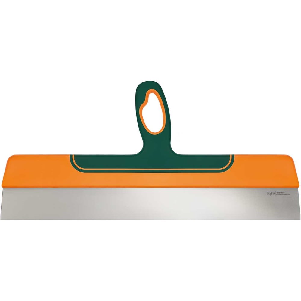 Фасадный шпатель (нержавеющая сталь, двухкомпонентная ручка, 450 мм) ВАРЯГ 35230 тов-153471. Полотно из нержавеющей сталь с содержанием никеля - долгий срок службы шпателя. Эргономичная обрезиненная противоскользящая рукоятка - удобно работать.