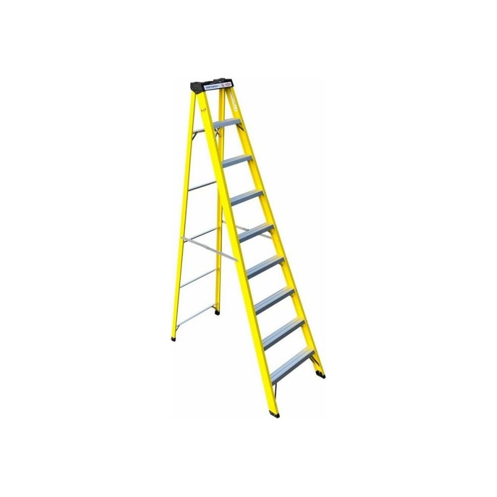Фиберглассовая стремянка SevenBerg 8 ступеней Ф-108 выполнена из фиберглассового П-образного профиля желтого цвета 1-ая секция 78х30 мм, 2-я - 45х30 мм. Толщина профиля 4 мм. Модель может использоваться как изолирующая стремянка, обладает всеми диэлектрическими свойствами Для удобства работы предусмотренна полочка для инструментов размером 0.13х0.32 м. Особая прочность и долговечность лестницы обеспечиваются применением стального крепежа с гальваническим покрытием. Лестница в рабочем положении фиксируется парными стальными стяжками-перемычками, что обеспечивает безопасность использования.