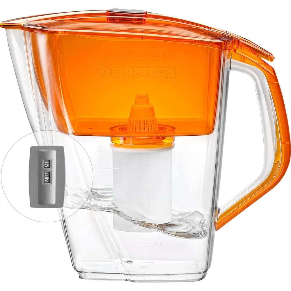 Фильтр-кувшин Барьер ГРАНД НЕО янтарь В014Р00 классической формы с механическим индикатором ресурса. Воронка удобно открывается при наклоне кувшина. Индикатор на крышке подскажет, когда заменить кассету. Общий объем кувшина 4,2 литра, полезный объем 2,2 литра. Кувшин можно мыть в посудомоечной машине. По окончанию ресурса кассету можно сдать на переработку.