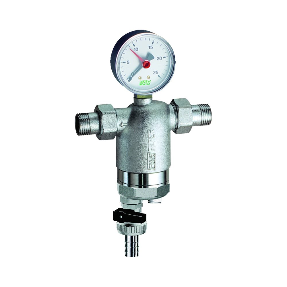 Фильтр FAR 100 мкм, с магнитными вставками, с манометром, Max: 95 C, 25 бар, 1/2" НР FA 39F4 12100 предназначен для установки в систему холодного или горячего водоснабжения квартиры или загородного дома.Защищает приборы (стиральная машина, краны, подводки и т.д.) от окалин, песчинок и прочих механических примесей.Материал корпуса DZR-латунь (хромированное покрытие).Картридж (сетка) изготовлен из нержавеющей стали AISI 304, размер ячеек 100 мкм.Внимание! Фото может отличаться от товара, смотреть характеристики.