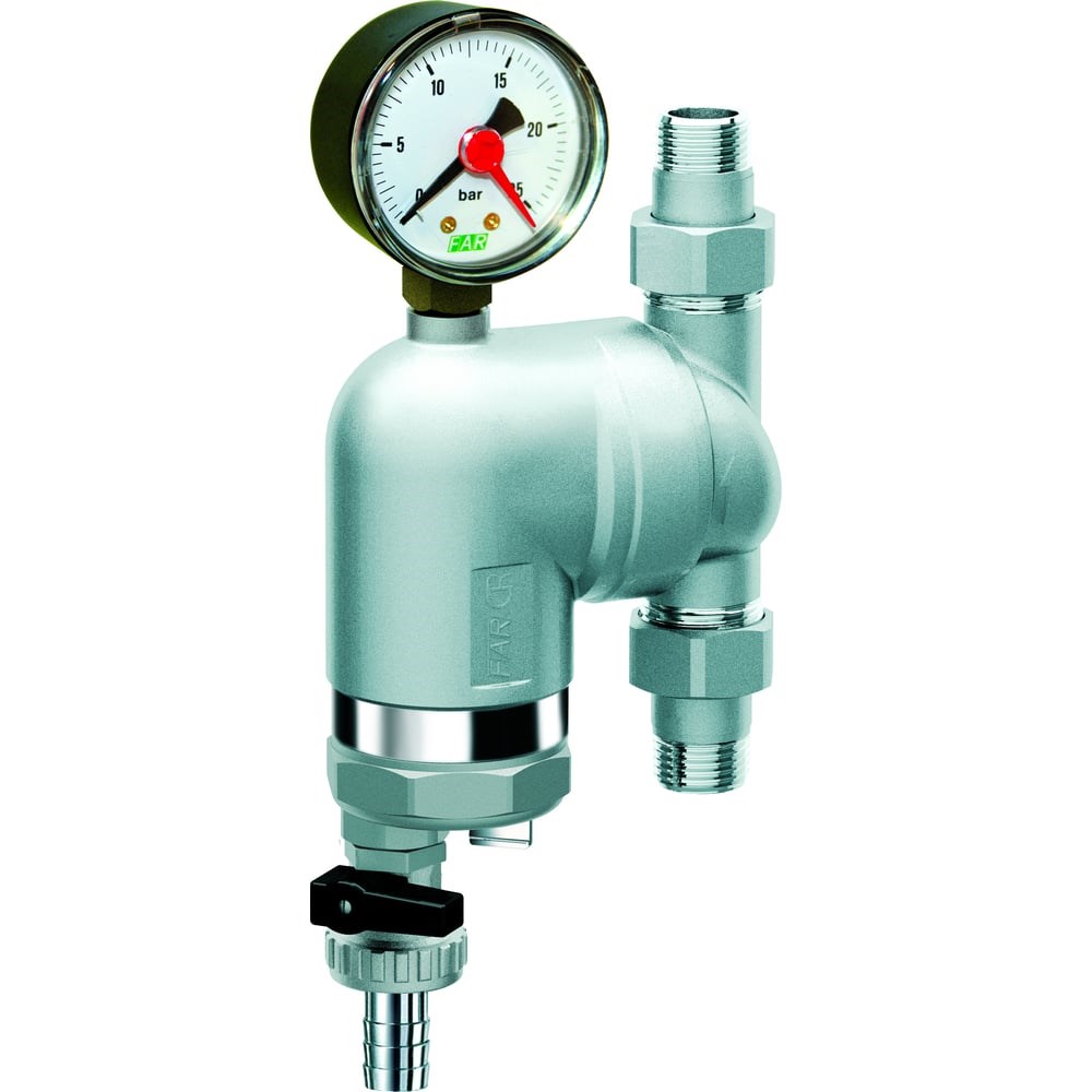 Фильтр FAR 300 мкм, с магнитными вставками, с манометром, Max: 95 C, 25 бар, поворотное соединение, 1/2" НР FA 39M4 12 предназначен для установки в систему холодного или горячего водоснабжения квартиры или загородного дома. Защищает приборы (стиральная машина, краны, подводки и т.д.) от окалин, песчинок и прочих механических примесей. Материал корпуса DZR-латунь (хромированное покрытие). Внимание! Фото может отличаться от товара, смотреть характеристики.