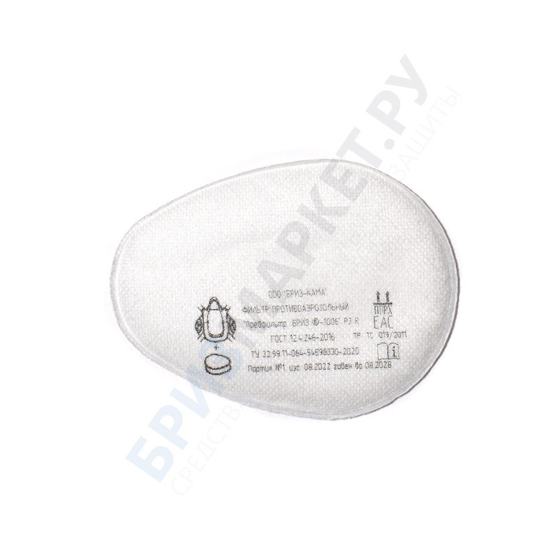 Фильтр противоаэрозольный «Предфильтр БРИЗ®-1006» P3 R предназначен: для очистки вдыхаемого человеком воздуха от: от различных видов аэрозолей (пыль, дым, туман): растительных (пеньковый, хлопковый, древесный, табачный, мучной, сахарный), животных (шерстяной, роговой, костяной, кожаный, пуховой), металлургических (железный, чугунный, стальной, медный, свинцовый), минеральных (наждачный, цементный, угольный, стеклянный, известковый, дорожный)