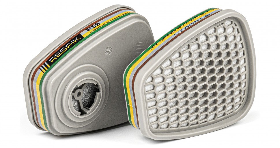 Противогазовый фильтр RESPIK® R59 предназначен для защиты органов дыхания от органических газов и паров с температурой кипения выше 65 °С, неорганических газов и паров, кислых газов, аммиака и его производных, класс защиты АВЕК1