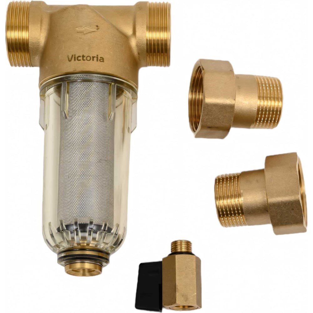 Промывной фильтр без манометра для холодной воды Victoria 1" (тонкая очистка) с американками 27-713