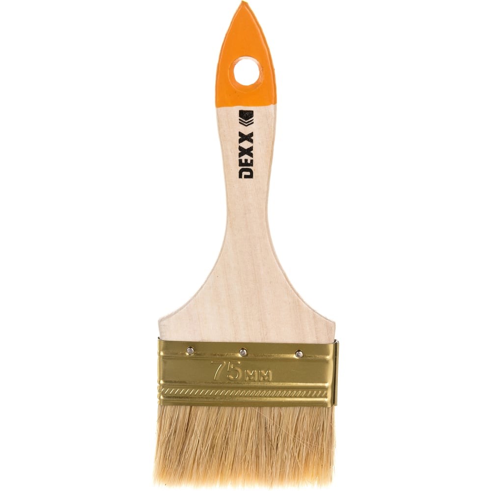 Флейцевая кисть DEXX ПРАКТИК 75мм 0100-075_z02 подойдет для нанесения различных видов ЛКМ. Натуральная щетина закреплена при помощи стального бандажа. Кисть оснащена деревянной рукояткой с отверстием для подвешивания.