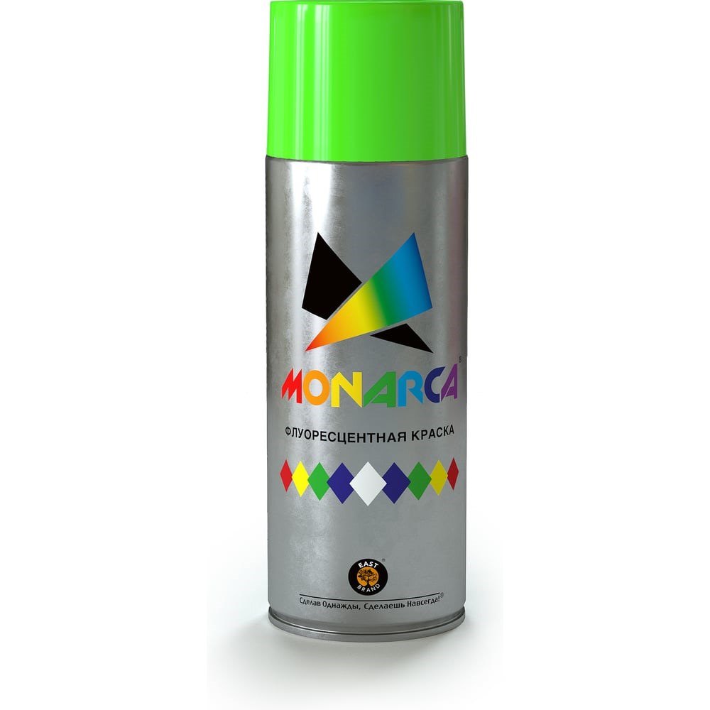 Высококачественная аэрозольная краска MONARCA флуоресцентная Зеленый 41003 со светоотражающей способностью, предназначенная для создания сигнальных и предупредительных эффектов. Равномерно распыляется и не растекается по поверхности. Легко наносится в труднодоступных местах. Стойкая к воздействию внешней среды и УФ излучению. Яркий, насыщенный цвет. Яркие цвета. Для внутренних и внешних работ. Рекомендована для оформления рекламы, вывесок, витрин, спортивного инвентаря и обозначения опасных мест, различных дизайнерских решений. Окрашивает поверхности из дерева, металла, пластика, стекла, камня, бетона, бумаги, картона.