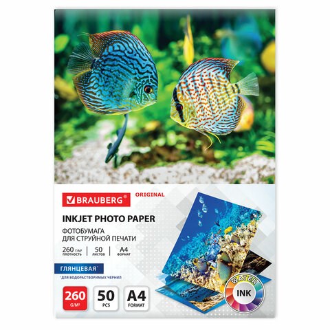 Фотобумага глянцевая, А4, 260 г/м2, односторонняя, 50 листов, BRAUBERG ORIGINAL, 363992