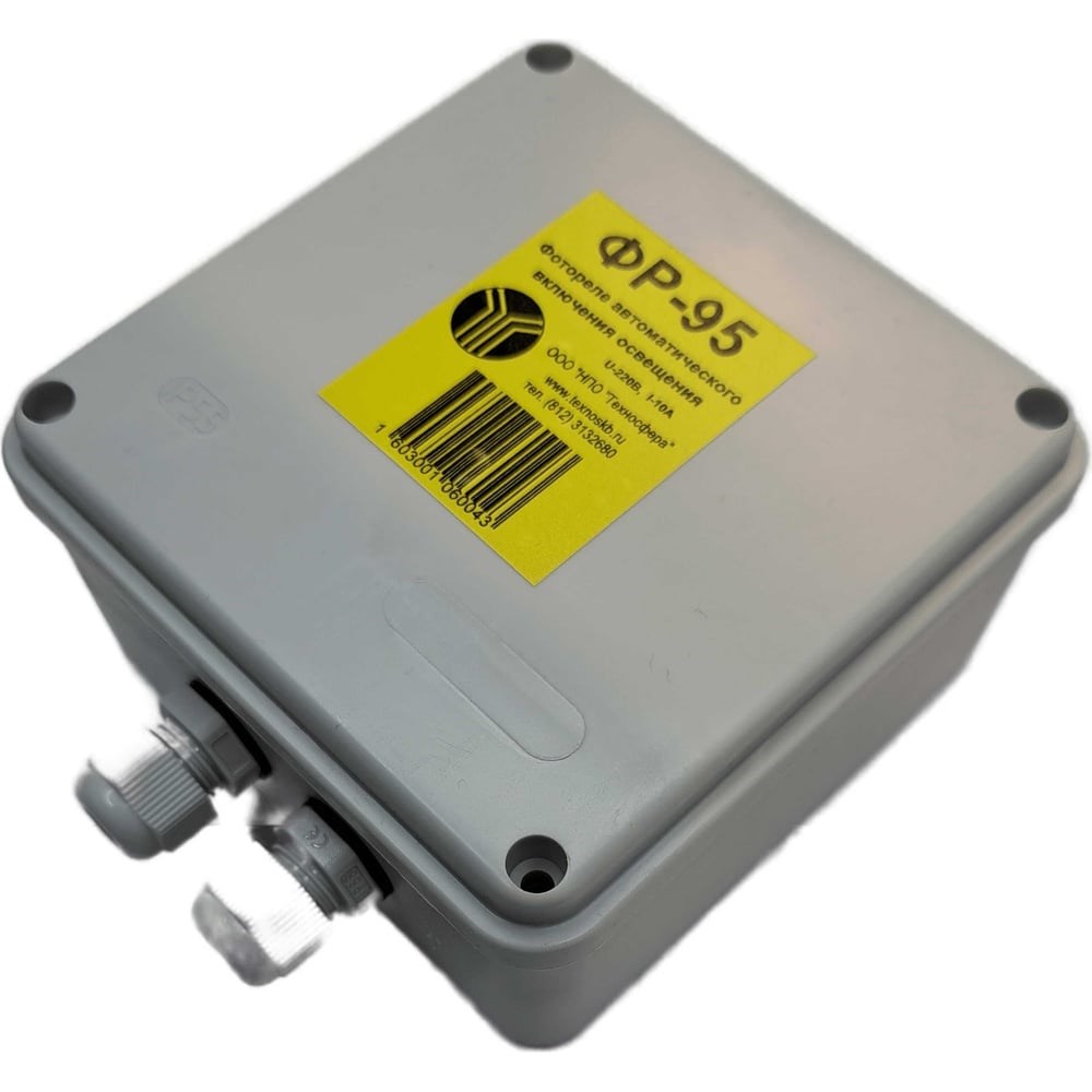 Фотореле Техносфера ФР-95, 220В, 10А 1603001060043 предназначен для автоматической регулировки наружного освещения в зависимости от времени суток. Выносной герметичный сенсор входит в комплект. На электронной плате реле расположены индикатор питания и включения. Есть настройка уровня освещенности срабатывания. Дополнительные характеристики: Чувствительность фотодатчика - 1-200Лк. Задержка выключения - 10-15с. Степень защиты реле - IP55. Степень защиты датчик - IP68. Климатическое исполнение - У3 (от-45 до +50ºС). Коммутируемый ток контакта (АС 250В) - 0.01-10А.