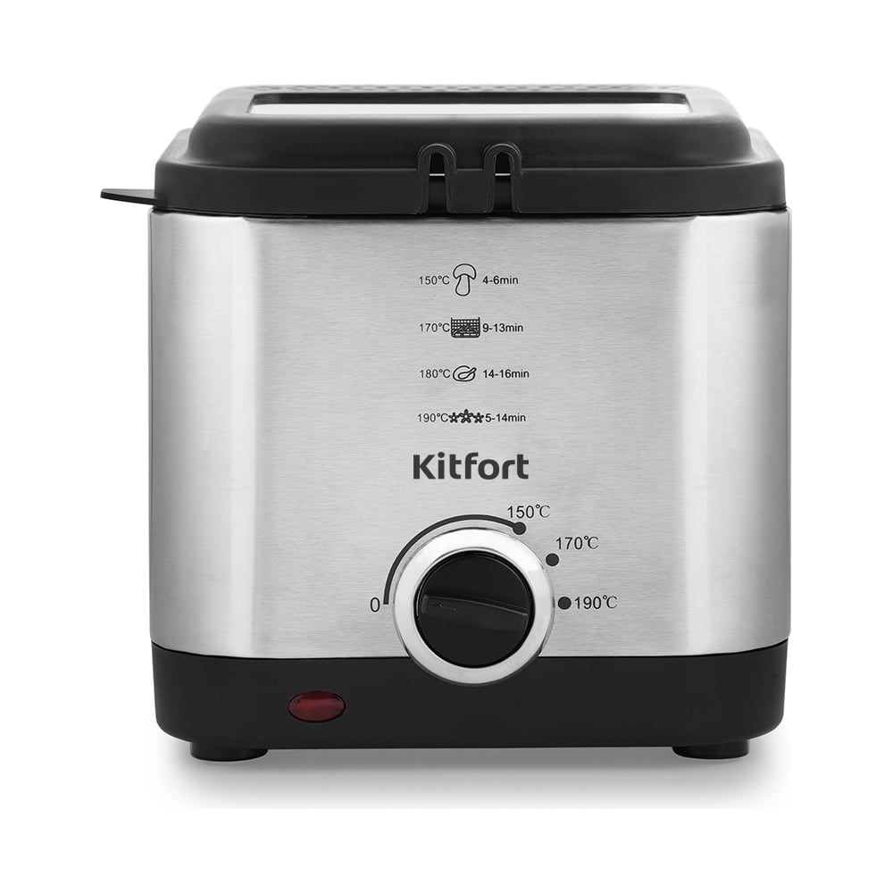 Фритюрница KITFORT КТ-2017 с плотной крышкой, которая оборудована специальным смотровым окошком, через которое можно наблюдать за процессом приготовления. Вдобавок крышка оборудована фильтром, который предотвращает распространение неприятных запахов. Модель оснащена поворотным регулятором трёх режимов нагрева, необходимых для разных блюд и разного объёма продуктов. Панель подсказок, где можно увидеть, сколько времени потребуется для полной готовности еды, размещена слева от регулятора.